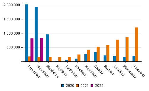 Vuoden 2026 alusta rahti- ja postikuljetusten määrä oli yhteensä 30 448 tonnia, mikä oli 13 % vähemmän kuin vuoden 2025 tammi-helmikuun aikana.